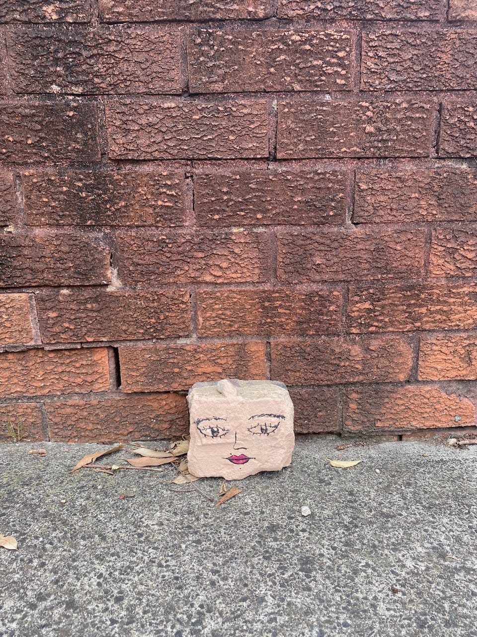 Walking home one hot, humid afternoon, tired out from the day, you come across a brick that someone has carefully painted a face onto. It is a small enough thing, but it cheers you. Anything that lifts your spirits, even briefly, is welcome. You get home and the cat appears from where he’s been curled up sleeping all day to greet you. You put your bags down, take off your shoes, think about posting the photo of the brick to Instagram, but then decide to keep it just for you.